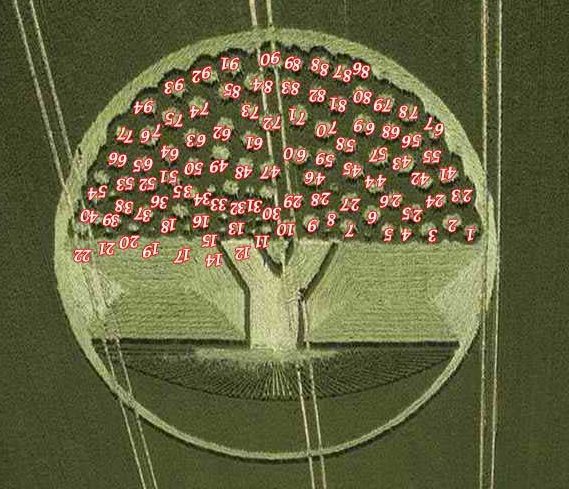 In the image below you can enter this game in any four books Matthew, Mark,  Luke or John. Where the center crosses you count it twice the same goes for the corners. So you would have eleven up and down and eleven right to left starting at the top 9, 5, 3,1  the pattern repeats four times the total count is 94 it is the same number in the one we call the tree of knowledge where the fruit positions are also 94,  it is the atomic number for plutonium.   Psalm 94:1-23 first destruction was by water,  the next by fire.  END GAME!