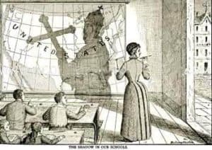 The caption reads “The shadow in our Schools.” Men of G-d knew in the early 1930’s what